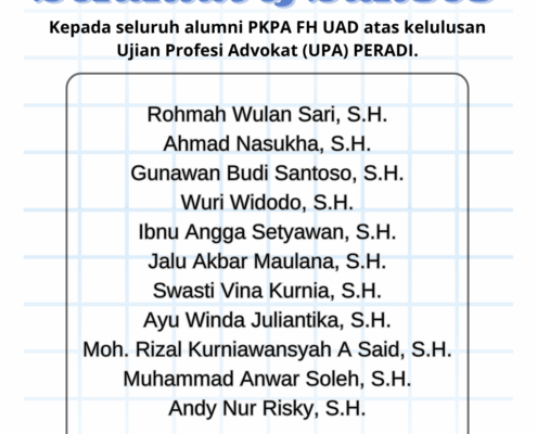Alumni PKPA FH UAD Lulus Ujian Profesi Advokat (UPA) PERADI
