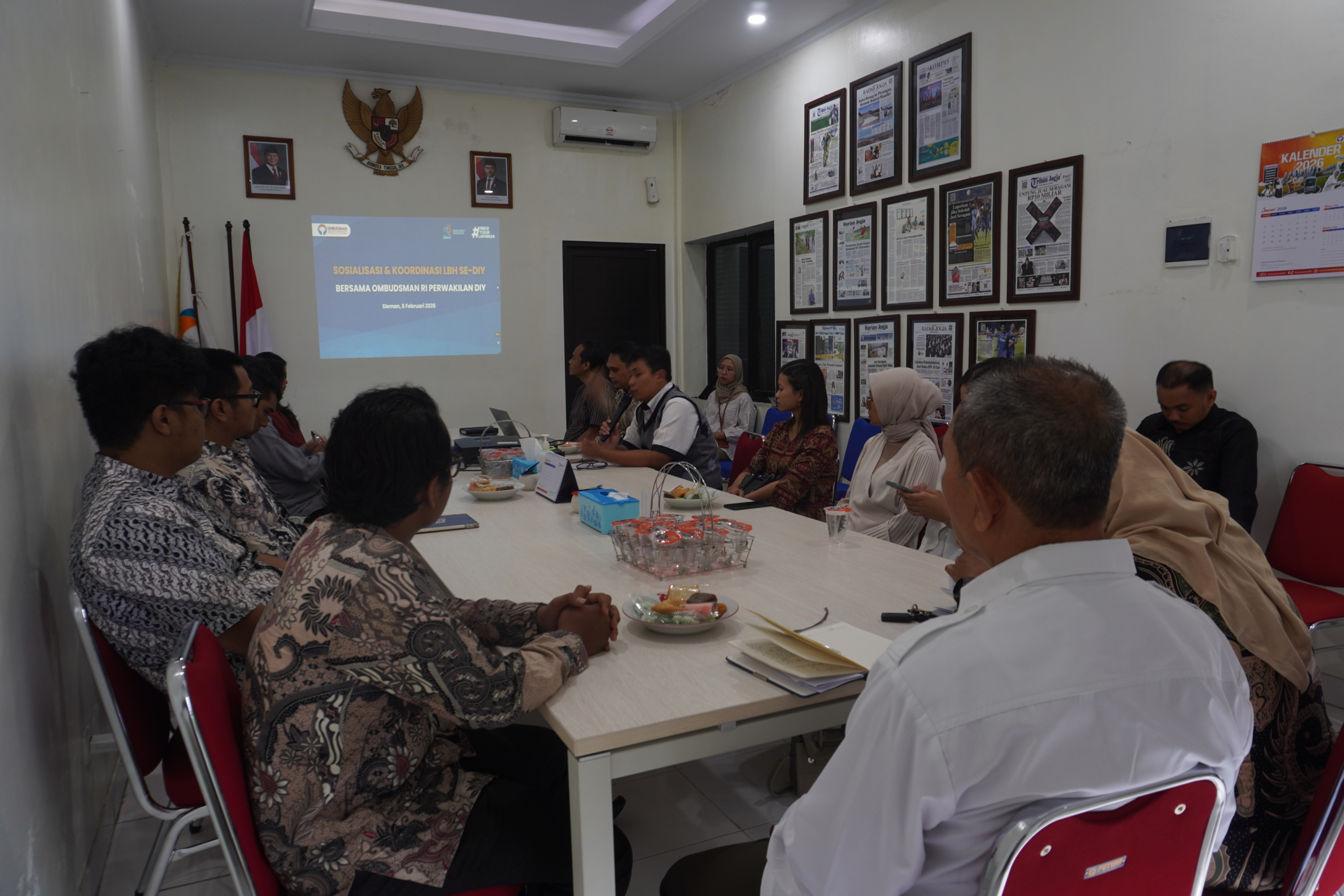 Pusat Konsultasi dan Bantuan Hukum Fakultas Hukum Universitas Ahmad Dahlan (PKBH FH UAD) hadir dalam kegiatan Sosialisasi dan Koordinasi Ombudsman Republik Indonesia Perwakilan Daerah Istimewa Yogyakarta bersama Lembaga Bantuan Hukum (LBH) se-DIY. Kegiatan Sosialisasi dan Koordinasi tersebut di selenggarakan oleh Perwakilan Ombudsman Republik Indonesia Daerah Istimewa Yogyakarta pada Jumat, 6 Februari 2026, bertempat di Kantor Ombudsman RI Perwakilan Daerah Istimewa Yogyakarta, Jl. Affandi CT X/11, Caturtunggal, Depok, Sleman, Yogyakarta yang di hadiri oleh 23 (dua puluh tiga) Lembaga Bantuan Hukum (LBH) di Daerah Istimewa Yogyakarta salah satunya PKBH FH UAD.
