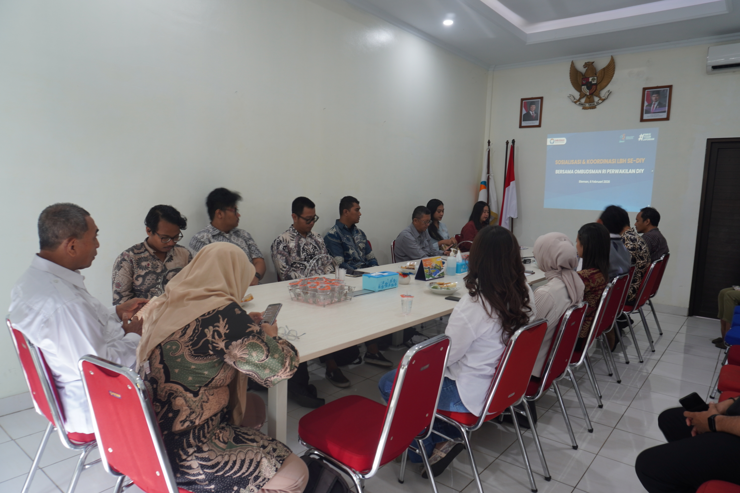 Ombudsman RI Perwakilan DIY menyampaikan pemaparan terkait tugas, fungsi, dan kewenangan Ombudsman dalam melakukan pengawasan terhadap penyelenggaraan pelayanan publik. Selain itu, kegiatan ini juga menjadi forum koordinasi dan diskusi bersama pengurus Lembaga Bantuan Hukum (LBH) se-DIY guna memperkuat peran kolaboratif dalam pendampingan dan perlindungan hak-hak masyarakat.